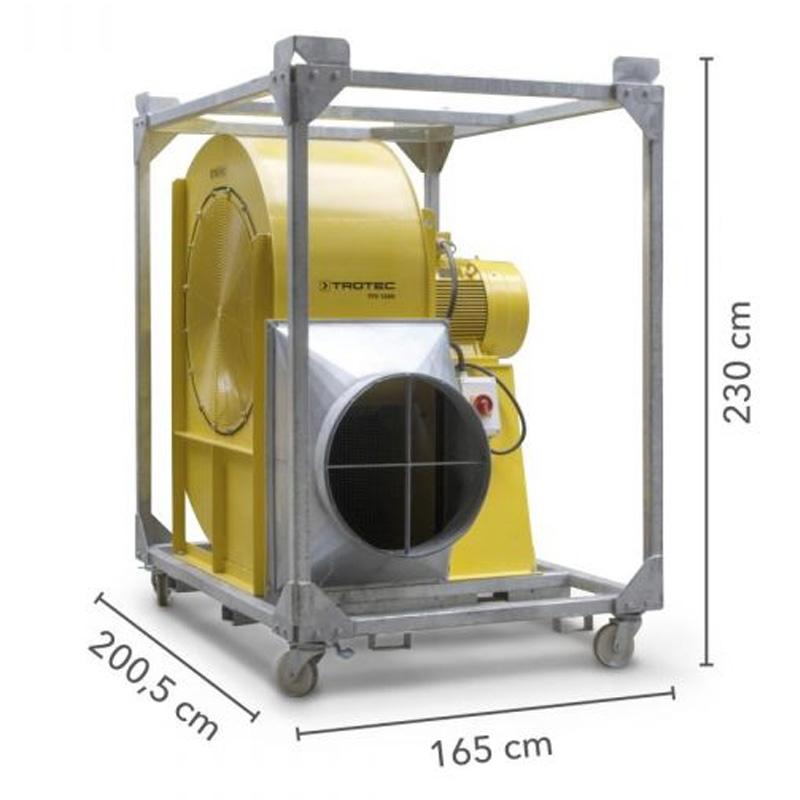 Le ventilateur haute performance triphasé TFV 1200 est conçu pour la ventilation de très grands volumes avec une pression élevée et un débit d’air important. Destiné aux applications industrielles et aux chantiers complexes, il permet un transport d’air efficace sur de longues distances.