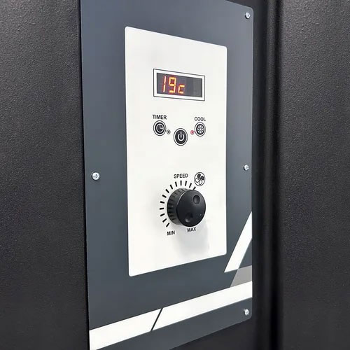 Une lampe UV intégrée traite l’eau en continu afin de limiter le développement de micro-organismes. Le contrôle du niveau d’eau reste visuel et rapide, tandis que la vitesse de ventilation réglable permet d’ajuster précisément le débit selon les besoins.